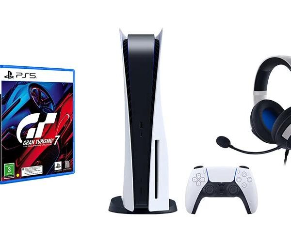 بلايستيشن 5 مع يد ولعبة قراند ترزمو 7 وسماعة قيمنق Razer Kaira X