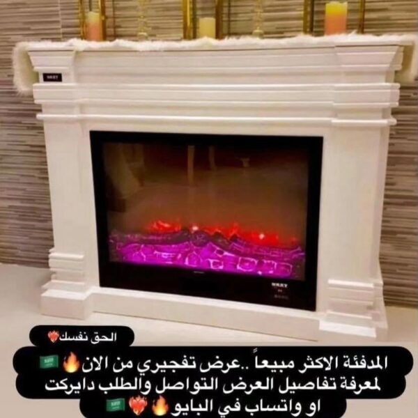 مزودة بشاشة تصدر الوان متوهجة توحي بشكل النار و تصدر هواء دافئ